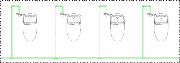 メイン管と機器の高さが異なる場合は、接続時に自動で調整されます。 調整を行う高さの差は、[設定]タブで[環境設定]コマンドをクリックして、[高さ補正]をクリックし、[微調整行う高さの差]で設定できます。 |