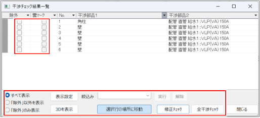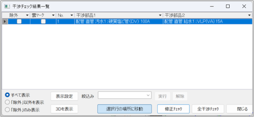 干渉チェックの結果を一覧で表示する(干渉チェック結果一覧)