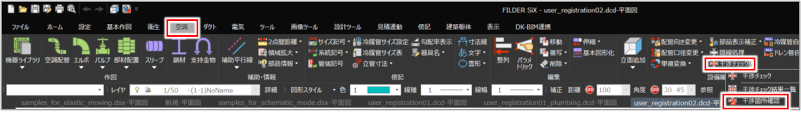 [衛生]タブ>[干渉チェック] [空調]タブ>[干渉チェック] |