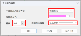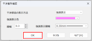 [干渉箇所確認]ダイアログが表示されますので、[OK]ボタンをクリックします。
