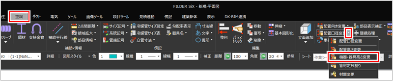 [衛生]タブ>[配管口径変更]プルダウンメニュー>[機器・器具高さ変更] [空調]タブ>[配管口径変更]プルダウンメニュー>[機器・器具高さ変更] |