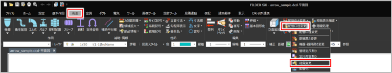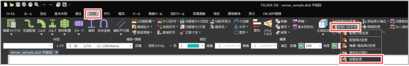 [衛生]タブ>[配管口径変更]プルダウンメニュー>[材質変更] [空調]タブ>[配管口径変更]プルダウンメニュー>[材質変更] |