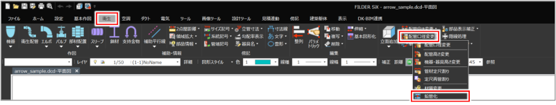 [衛生]タブの[配管口径変更]プルダウンメニューから[鉛管化]コマンド(