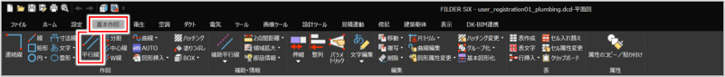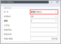 [コマンドプロパティ]の[モード]で[配管オフセット]を選択します。