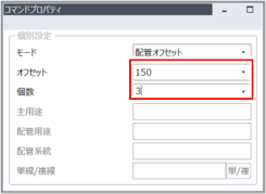 [コマンドプロパティ]の表示が配管オフセット作図用に切り替わります。