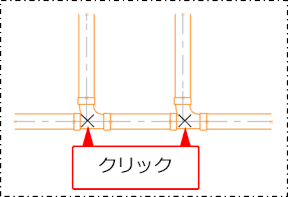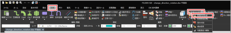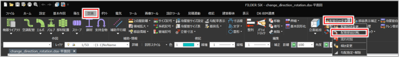[衛生]タブ>[配管向き変更]プルダウンメニュー>[配管向き変更] [空調]タブ>[配管向き変更]プルダウンメニュー>[配管向き変更] |
