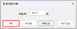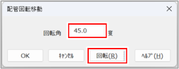 [回転]ボタンをクリックするごとに、入力した角度で配管部品が回転します。