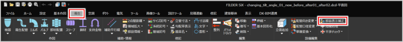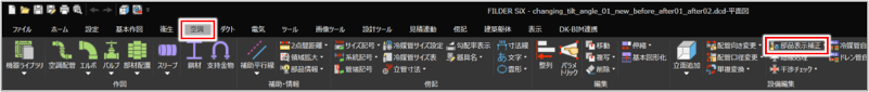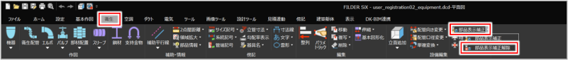 [衛生]タブ>[部品表示補正]プルダウンメニュー>[部品表示補正解除] [空調]タブ>[部品表示補正]プルダウンメニュー>[部品表示補正解除] |