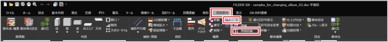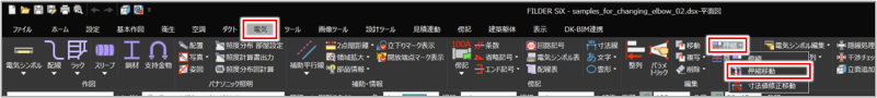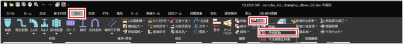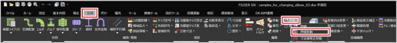 [衛生]タブ>[伸縮]プルダウンメニュー>[伸縮移動] [空調]タブ>[伸縮]プルダウンメニュー>[伸縮移動] [ダクト]タブ>[伸縮]プルダウンメニュー>[伸縮移動] [電気]タブ>[伸縮]プルダウンメニュー>[伸縮移動] [建築躯体]タブ>[伸縮]プルダウンメニュー>[伸縮移動] |