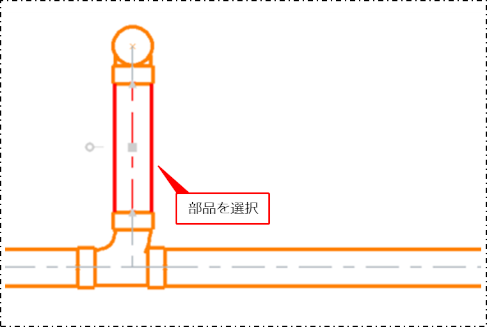 コマンドキャンセルの状態で伸縮移動する部品を選択します。