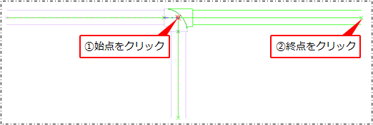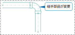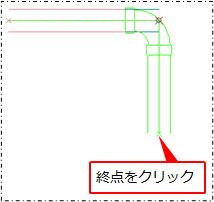 変更するエルボ上で始点をクリックし、配管の終点をクリックします。