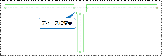 継手がエルボからティーズに変更され、分岐のルートが作図されます。