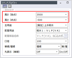 立管の終点の高さを入力します。 |