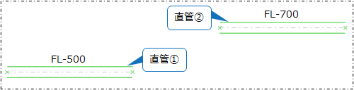 ここでは、「FL-500」(直管①)と「FL-700」(直管②)の2つの直管を4つの作図パターンで接続する方法について説明します。