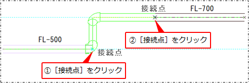 直管①→直管②の順で接続点をクリックします。