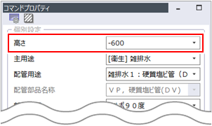 )をクリックして実行し、高さ「-600」の衛生配管を作図します。