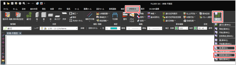 矩形や円弧を、躯体の梁や円弧梁、鉄骨梁に変換します。