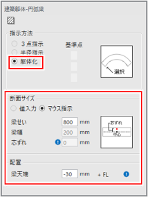 [建築躯体-円弧梁]ダイアログが表示されます。