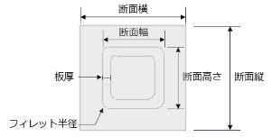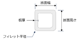 鉄骨フィレットの半径を入力します。 [角形鋼管]を選択している場合に設定できます。 |