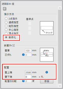 [指示方法]で[躯体化]を選択し、作図方法を設定します。