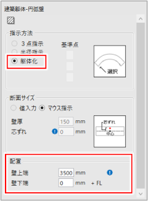 [建築躯体-円弧壁]ダイアログが表示されます。