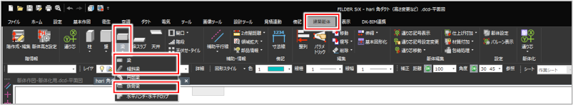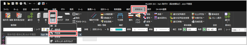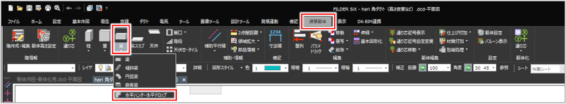 [建築躯体]タブの[梁]プルダウンメニューから[水平ハンチ・水平ドロップ]コマンド(