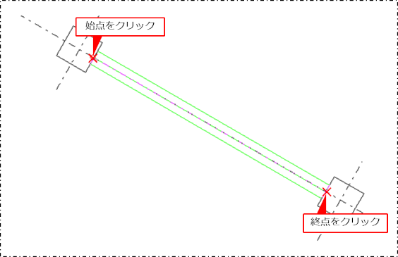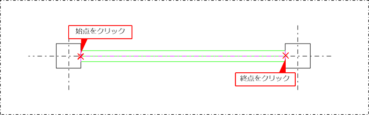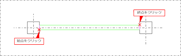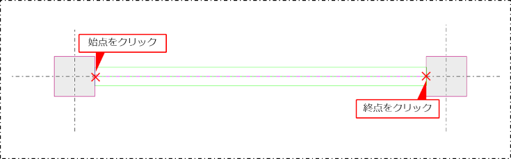 基本図形の梁を[中心指定]でトレースして作図する場合 基本図形の梁を[中心指定]でトレースして作図する場合