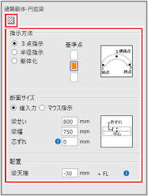 [建築躯体-円弧梁]ダイアログが表示されます。