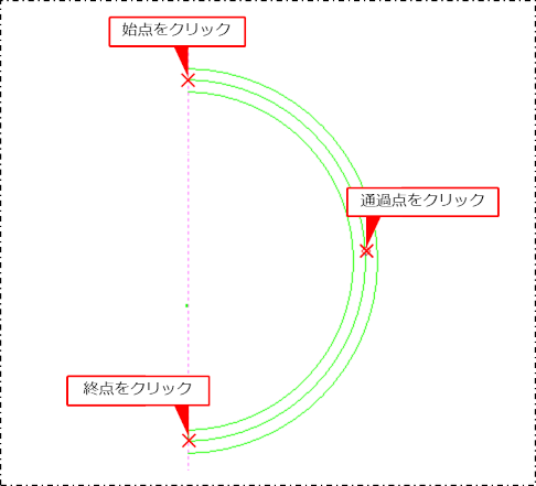 円弧梁の中心位置が取りにくい場合に、円弧上の3点を指示して梁を作図します。