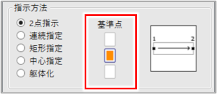[指示方法]で[2点指示][矩形指定]または[中心指定]を選択します。