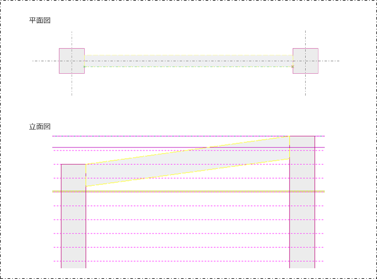 [傾斜梁]にチェックを付け、[梁天端(始点)]と[梁天端(終点)]を入力します。