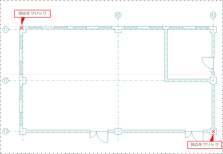 床スラブの頂点になる位置をクリックしてから、右クリックまたは[Enter]キーを押し、確定します。