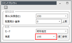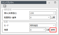 配置角度を入力します。 [0度]ボタンをクリックすると、「0」が入力されます。 配置されている図形の線の角度を参照して適用するときは、[参照]ボタンをクリックします。操作方法について、詳しくは以下を参照してください。 |