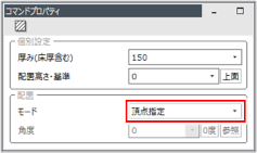[コマンドプロパティ]の[モード]で[頂点指定]を選択します。