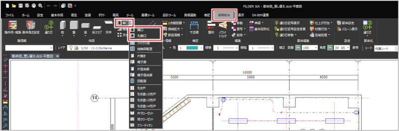 建築躯体に開口、扉、引き戸などの開口部を作図します。