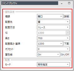 開口部の配置先を選択します。 選択した配置先によって、設定できる項目が以下のように異なります。