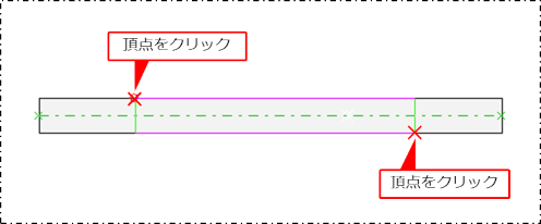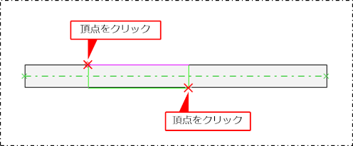 開口部を配置する壁の頂点(線上)をクリックしてから、対角の頂点をクリックします。