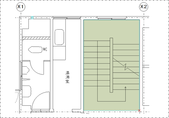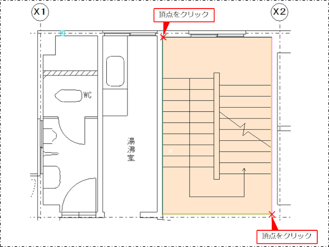頂点を指定し、床スラブ、天井に開口部を作図します。