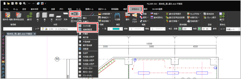 [建築躯体]タブの[開口]プルダウンメニューから[フィックス窓]コマンド(