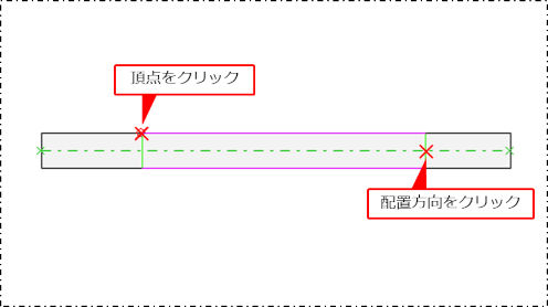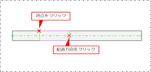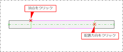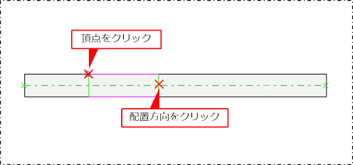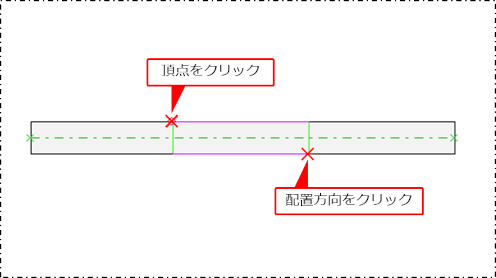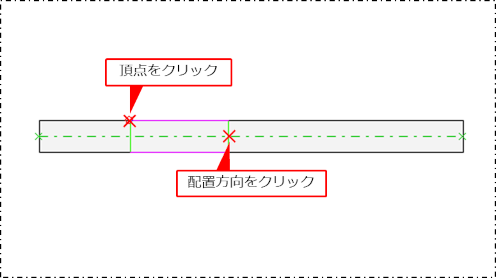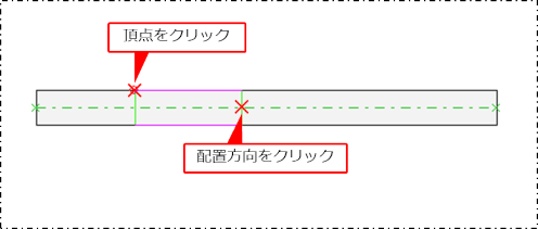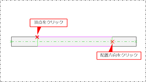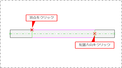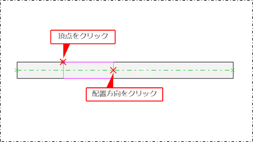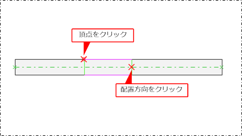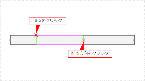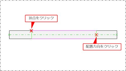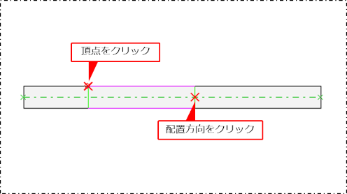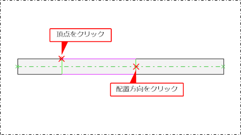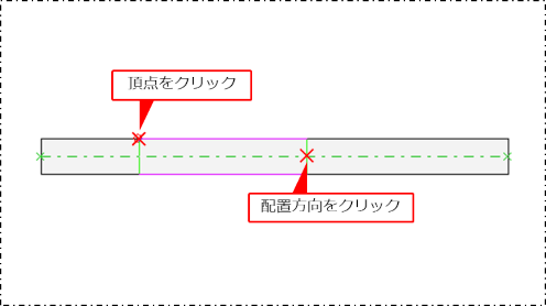 縦軸回転窓を配置する壁の頂点(線上)をクリックしてから、配置方向をクリックします。