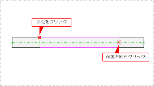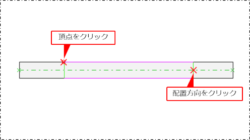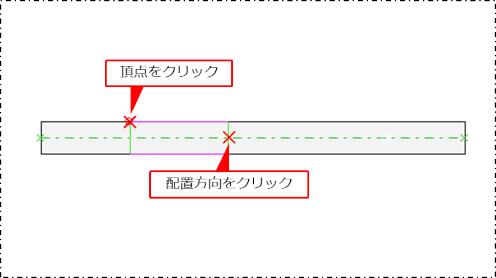 親子扉を配置する壁の頂点(線上)をクリックしてから、配置方向をクリックします。