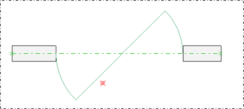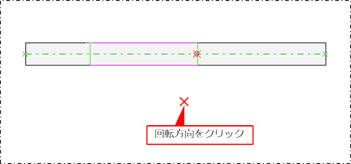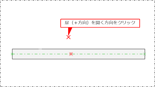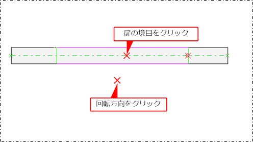 縦軸回転窓の扉(親)と扉(子)の境目をクリックしてから、回転方向をクリックします。