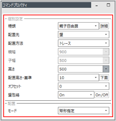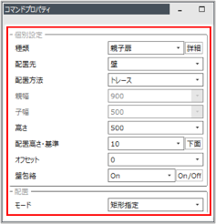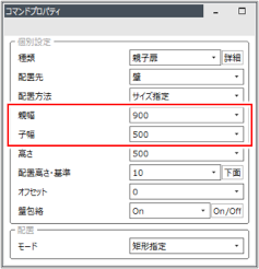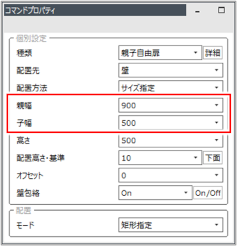 [コマンドプロパティ]で[親幅][子幅]を設定します。