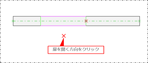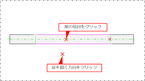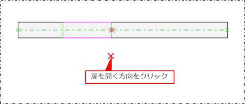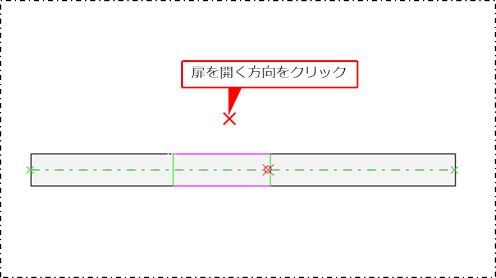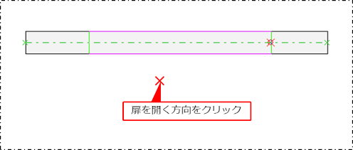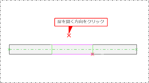 親子扉の扉(親)と扉(子)の境目をクリックしてから、扉が開く方向をクリックします。