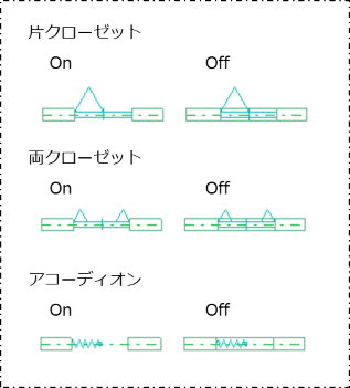 ここでは、例として片クローゼットとアコーディオンを作図します。
