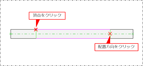フィックス窓を配置する壁の頂点(線上)をクリックしてから、配置方向をクリックします。