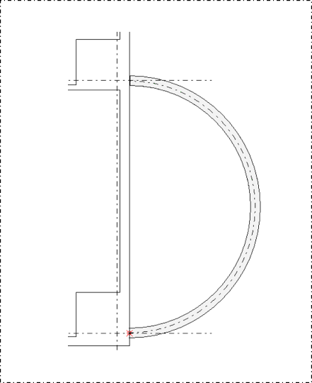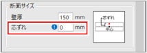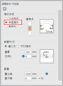 [断面サイズ]で[値入力]を選択した場合は、[基準点][壁厚][芯ずれ]の設定に従って円弧壁が作図されます。