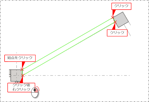 斜めの壁などを作図する場合に、配置されている図形の線の角度を適用して作図できます。