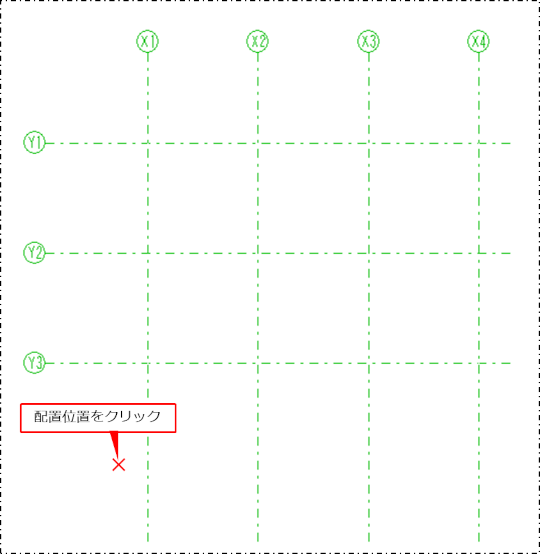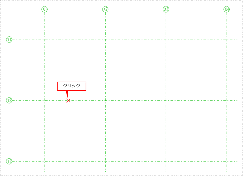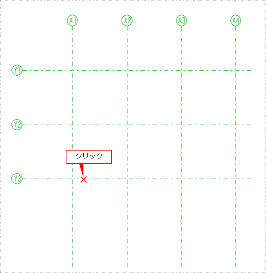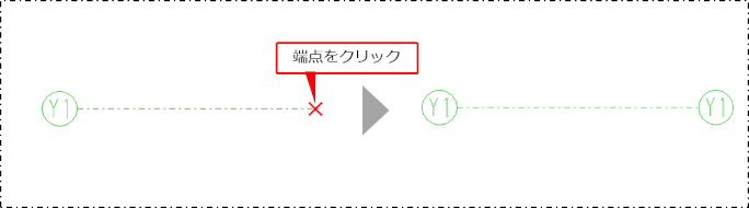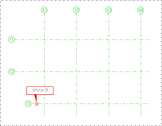 バルーンの表示・非表示を切り替える、通り芯の端点をクリックします。