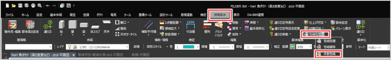 [建築躯体]タブの[包絡処理]プルダウンメニューから[包絡解除]コマンド(